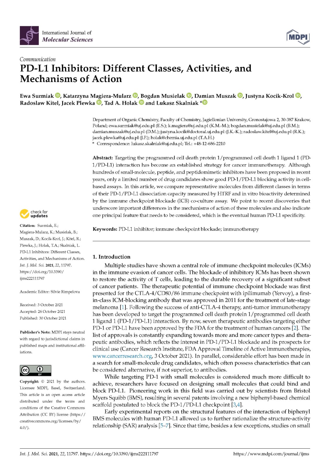 关键词: PD-L1 inhibitor; immune checkpoint blockade; immunotherapy