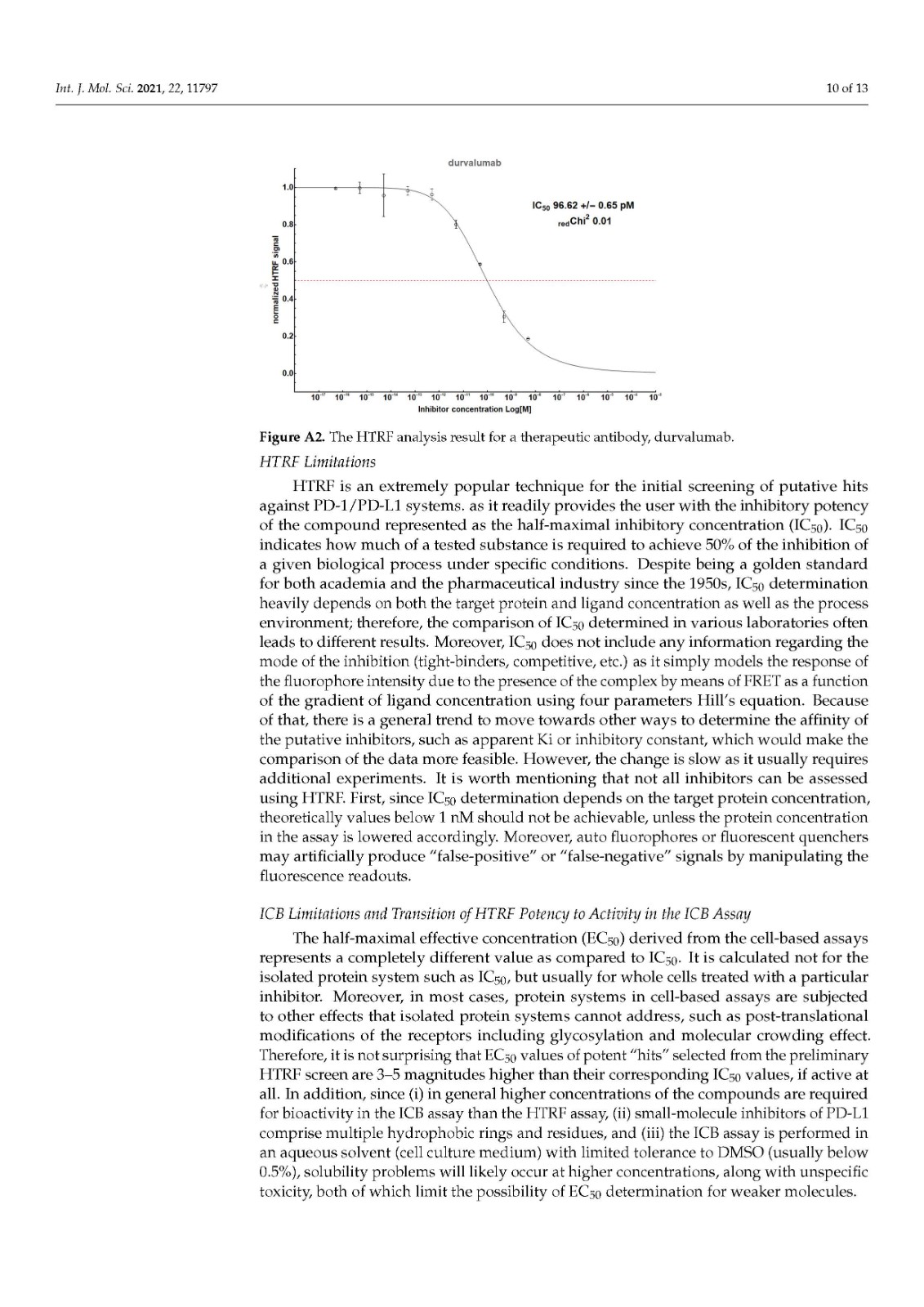 我们对 PD-1/PD-L1 免疫检查点的体外靶向与选自各种类别的分子进行了比较,包括小分子、大环肽和单克隆抗体。为此,应用了现有文献中使用的两种标准化和流行技术:基于蛋白质的均相时间分辨荧光 (HTRF) 方法和基于细胞的免疫检查点阻断 (ICB) 检测。使用这些方法,确定了描述受试化合物体外效力的三个参数:(i) PD-1/PD-L1 复合物形成阻断的IC 50值(来自 HTRF);(ii) 欧共体50被PD-L1(来自ICB)阻断的效应T细胞的再激活值;(iii) 效应 T 细胞的最大活化水平,计算为在治疗性抗 PD-L1 抗体 atezolizumab 或 durvalumab 存在下的活化百分比。
