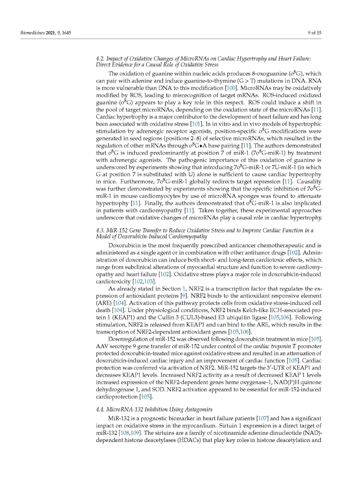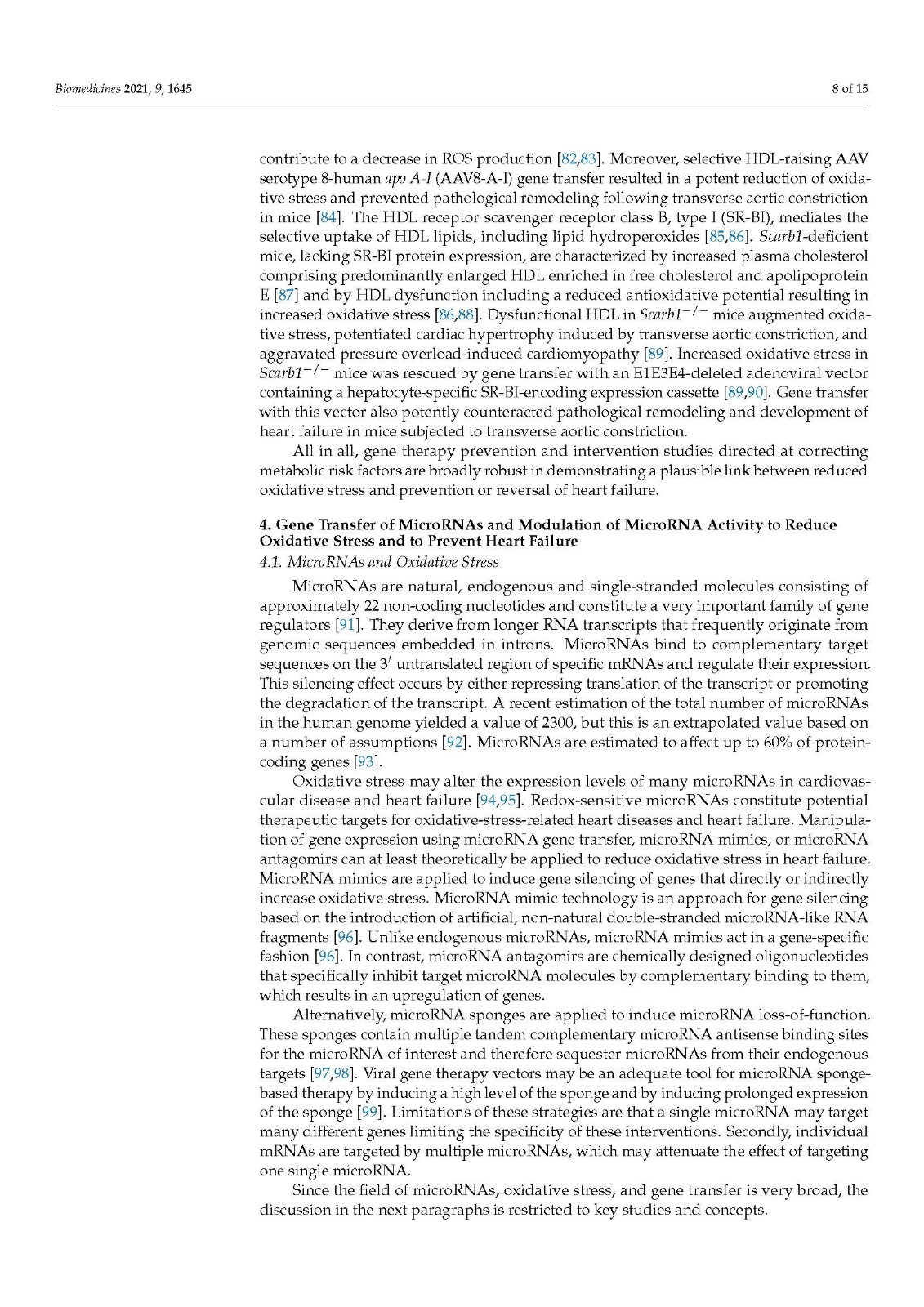 Gene transfer studies have provided strong corroborative evidence for a key role of oxidative stress in pathological cardiac hypertrophy and remodeling and in the development of heart failure. Since the heart is the metabolically most active organ and is characterized by the highest content of mitochondria of any tissue, this organ is very susceptible and vulnerable to oxidative stress. Oxidative stress not only causes protein oxidation, lipid peroxidation, and DNA damage but also oxidative changes of microRNAs [5,11]. The key pathogenetic role of oxidative changes of microRNAs has been unequivocally demonstrated [11].