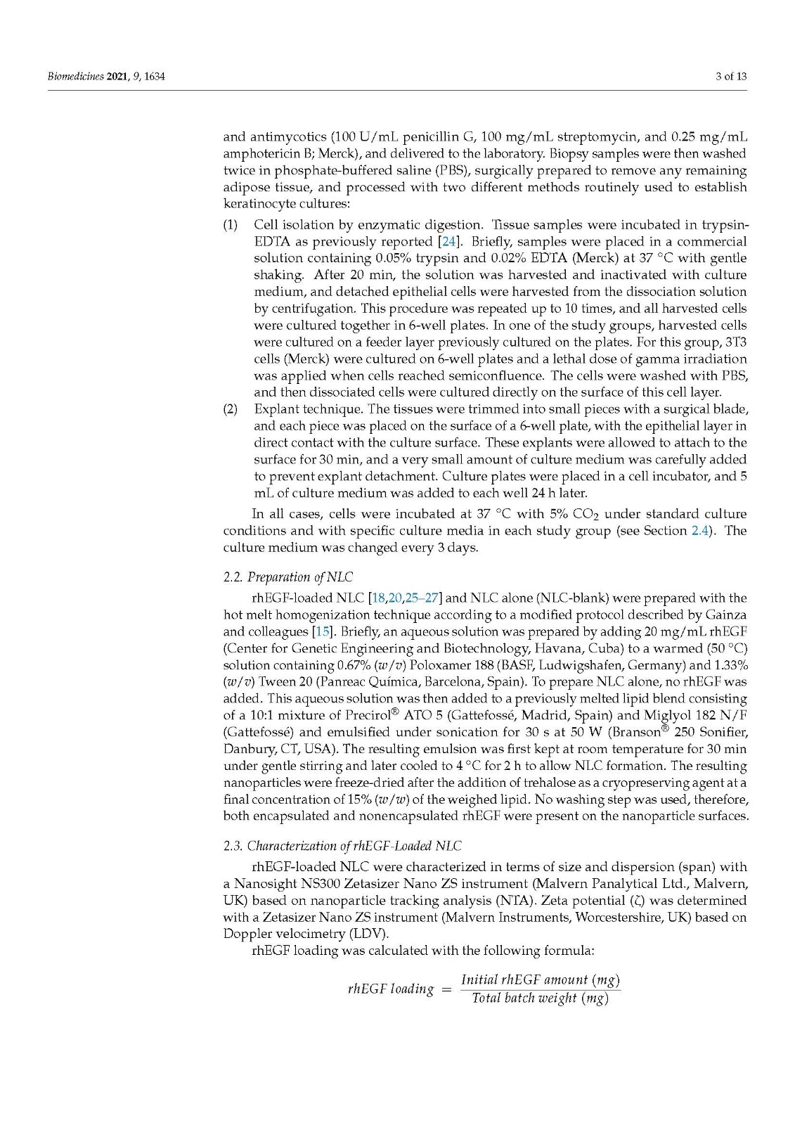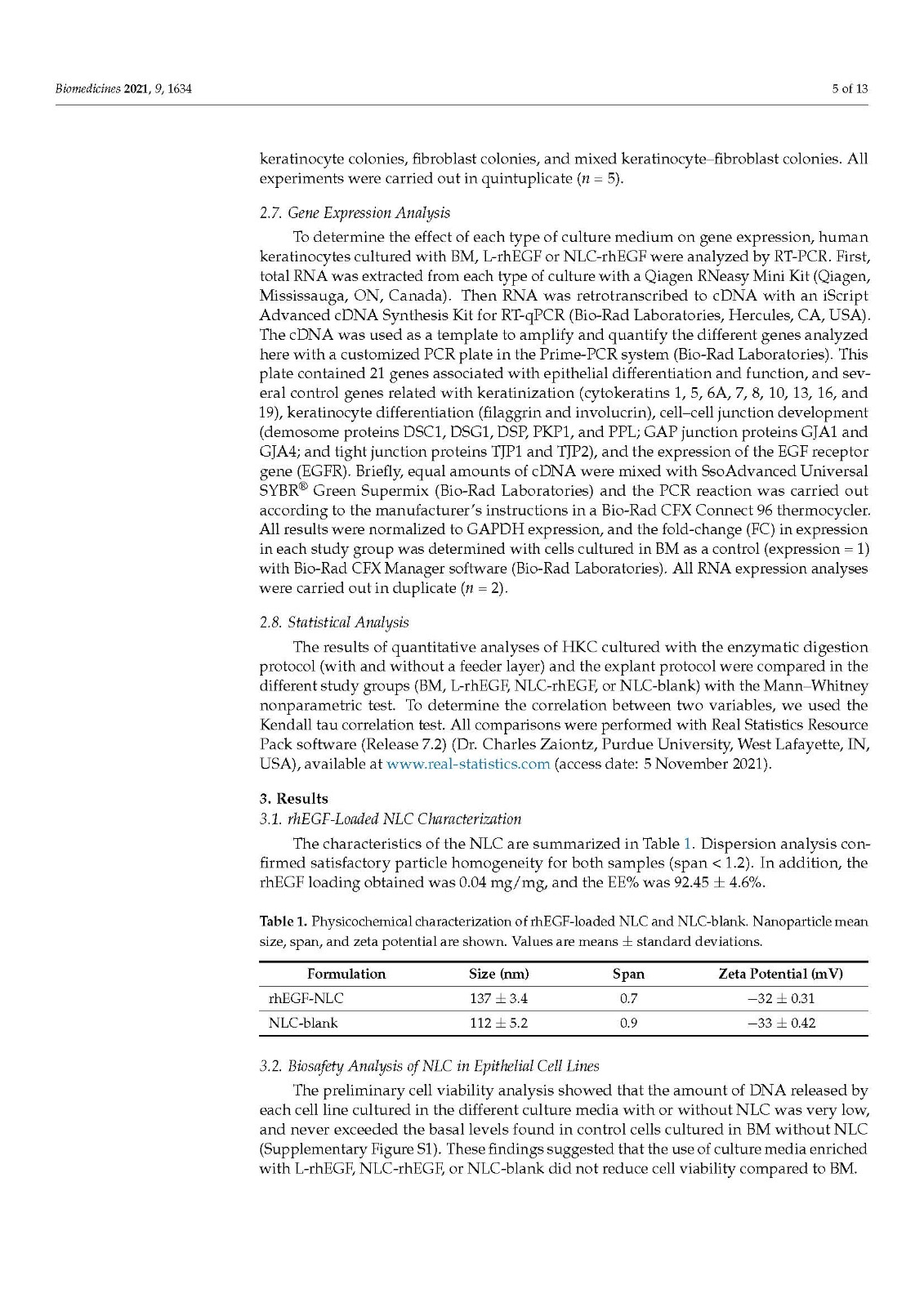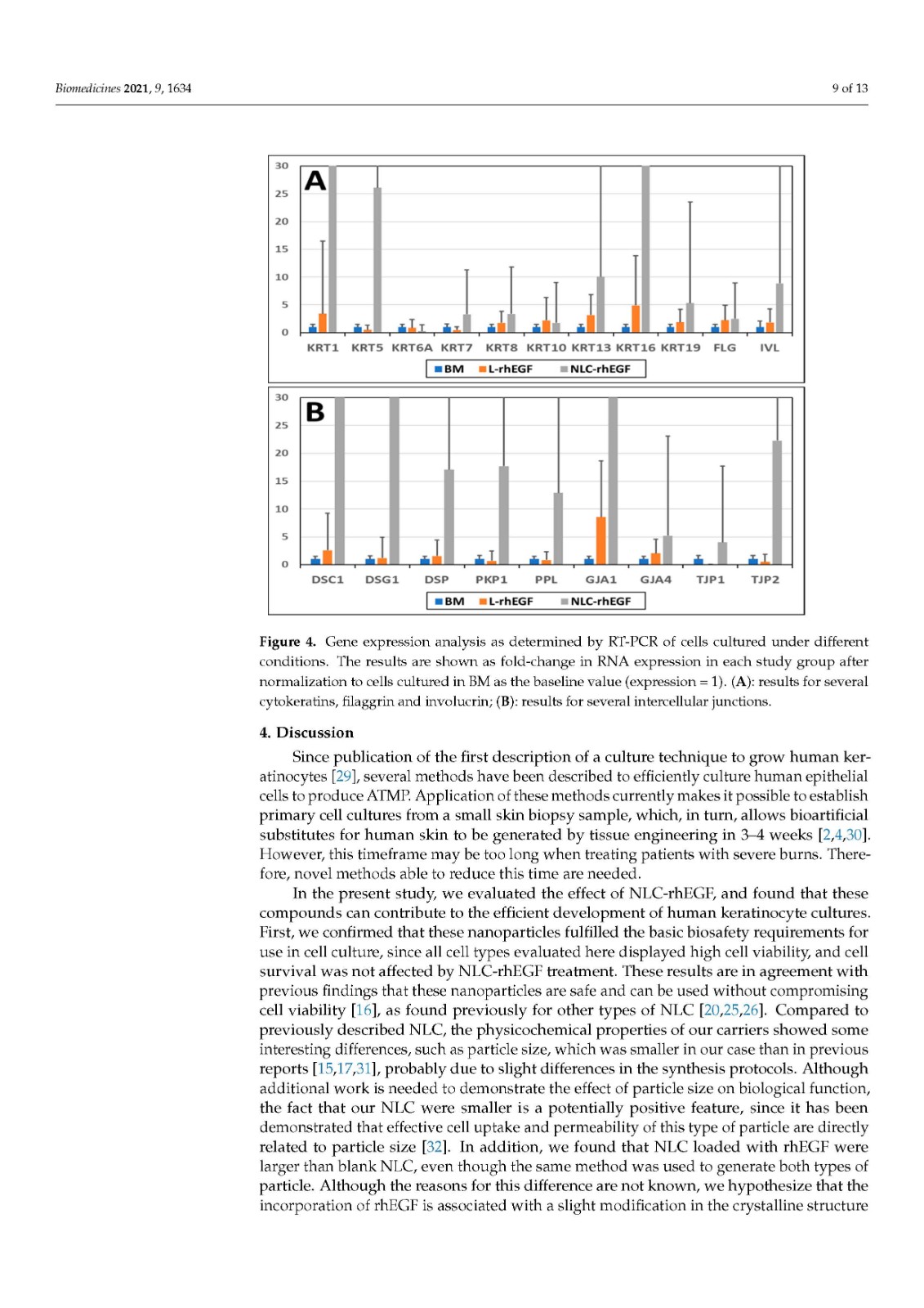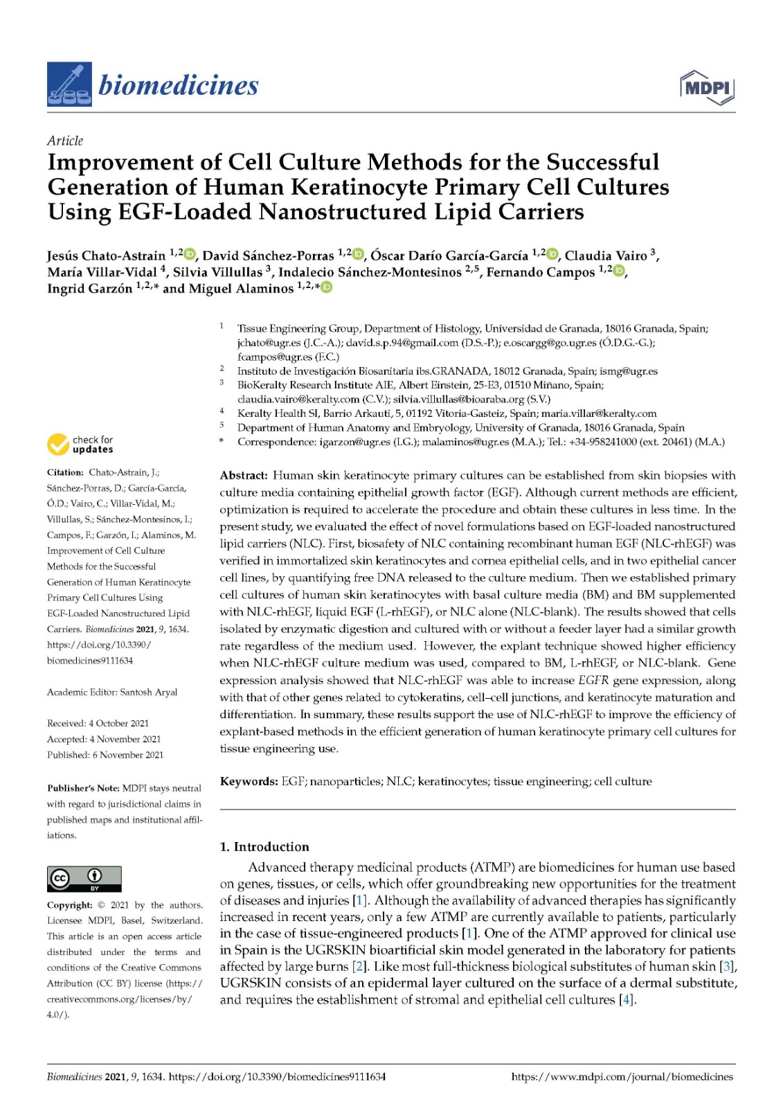 EGF, nanoparticles, NLC, keratinocytes, tissue engineering, cell culture