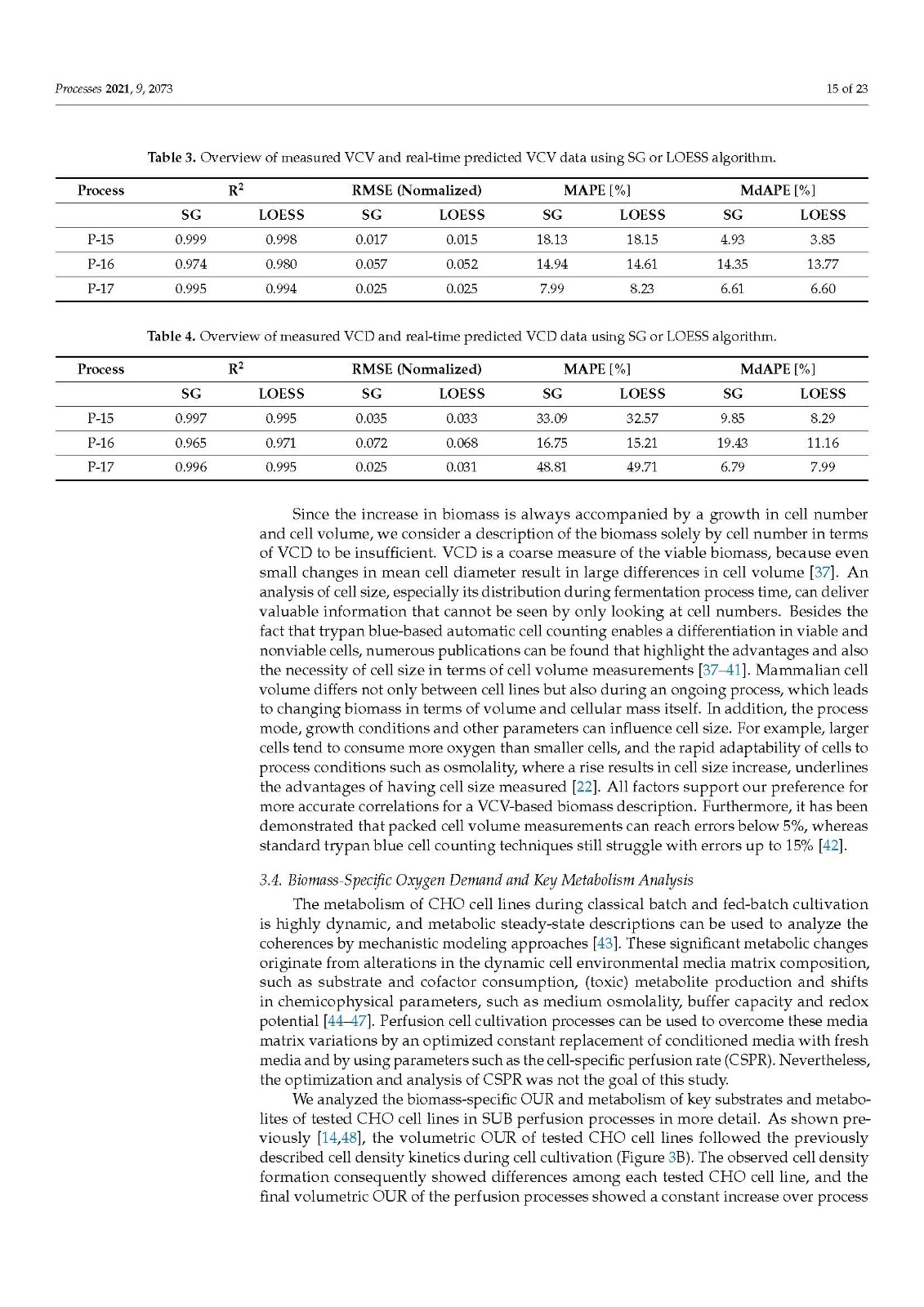 我们的数据还表明,当使用 VCV 代替 VCD 作为生物量描述时,建立了更高的模型精度。这增强了我们对现代生物过程中生物质描述范式变化的坚定信念。在生物量测定方面,VCD 不应再成为主要或唯一的测量方法。默认情况下,应使用细胞大小或体积、其随时间的分布以及 VCV 来准确描述生物量和所有衍生的代谢变量,例如 mAB、乳酸生产率或葡萄糖/氧气消耗率。仅基于细胞密度测量的结论可能会导致错误的假设、计算或其他不可预见的误解,从而生成生物量的碎片化图片。由于现代生物过程可能非常复杂和动态,生物量和细胞代谢分析应尽可能全面,以生成可比较和可重复的数据基础。此外,基于废气的软传感器的使用很容易在 SUB 系统以及普通不锈钢工厂中实施。为此,不需要在生物反应器内安装任何硬型探针,并且不会增加操作或降低安全性,因此可以防止可能的污染风险??梢允褂?、优化和扩展生物量增长和增加的需氧量之间的基本相关性,以生成有关各种生物过程变量的深刻实时知识,例如所示的生物量和代谢营养率软传感器。而且,监测,这强调了实施和运行废气分析仪的灵活性和突出特点。