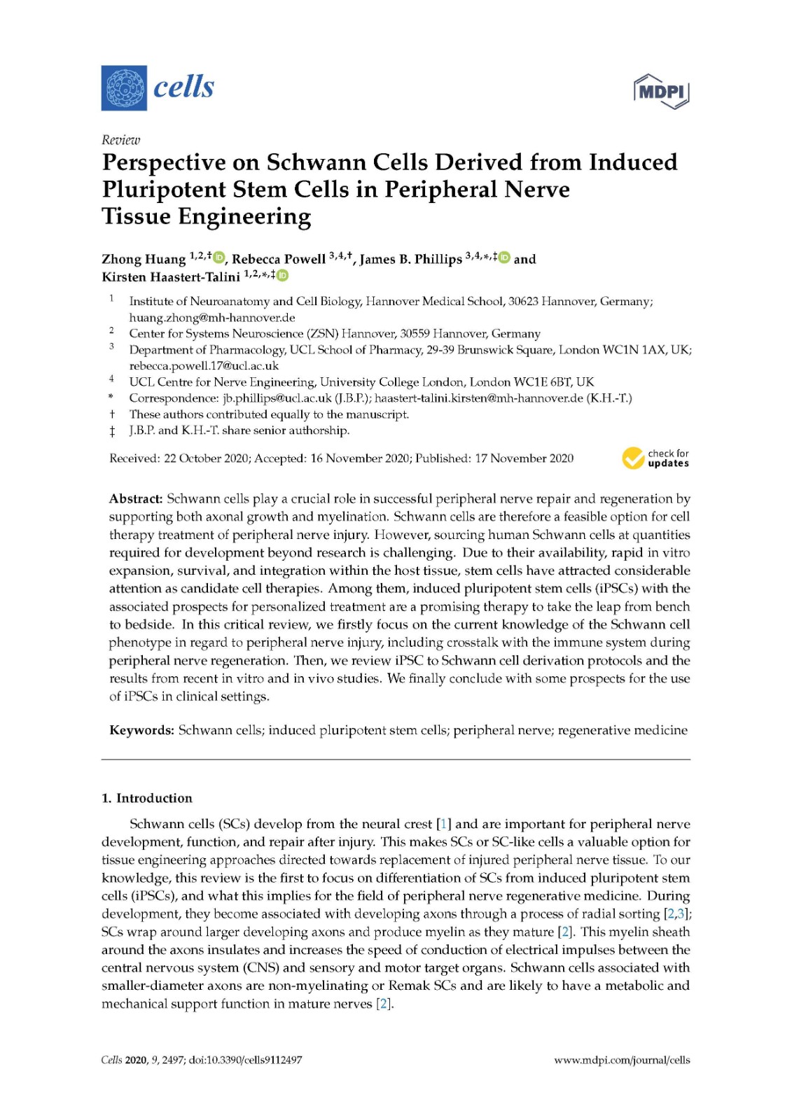 关键词 雪旺细胞,chwann cells,induced pluripotent stem cells, peripheral nerve,regenerative medicine,诱导多能干细胞,周围神经,再生医学