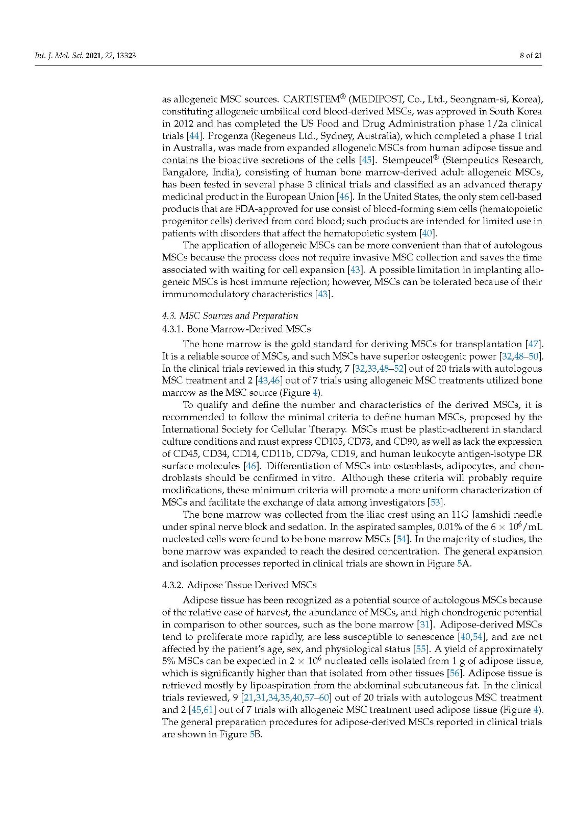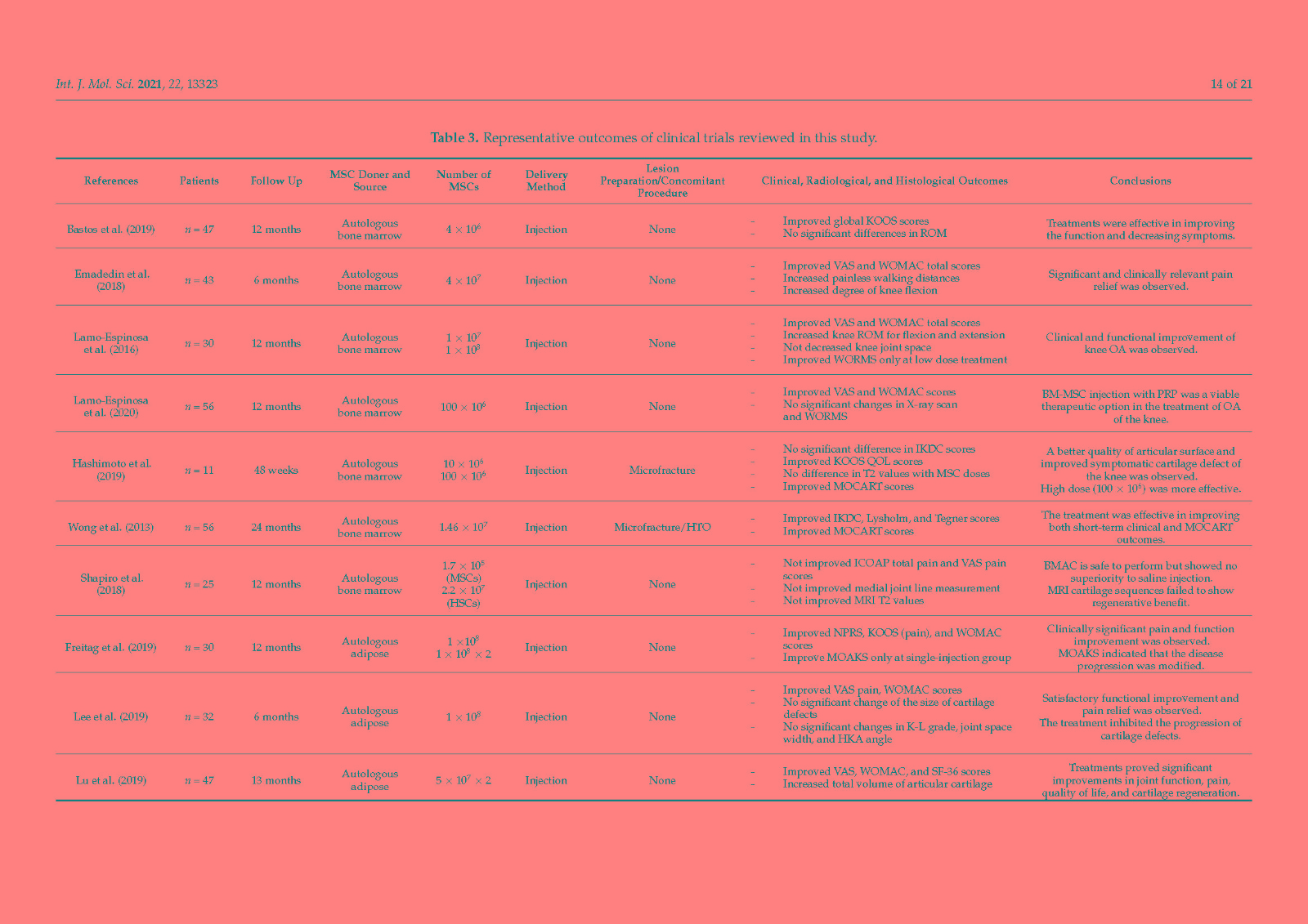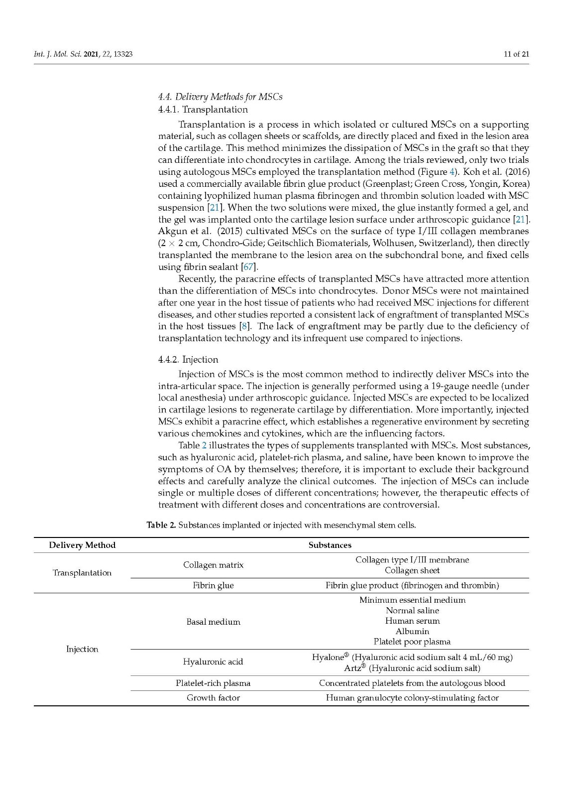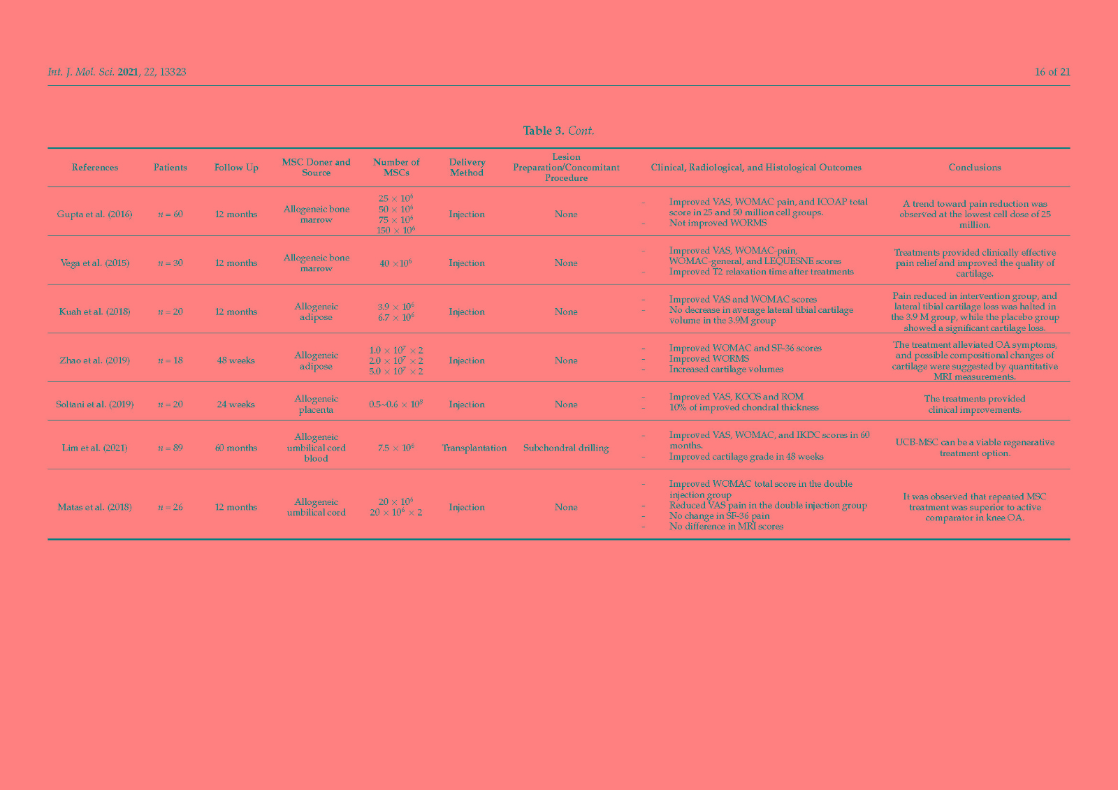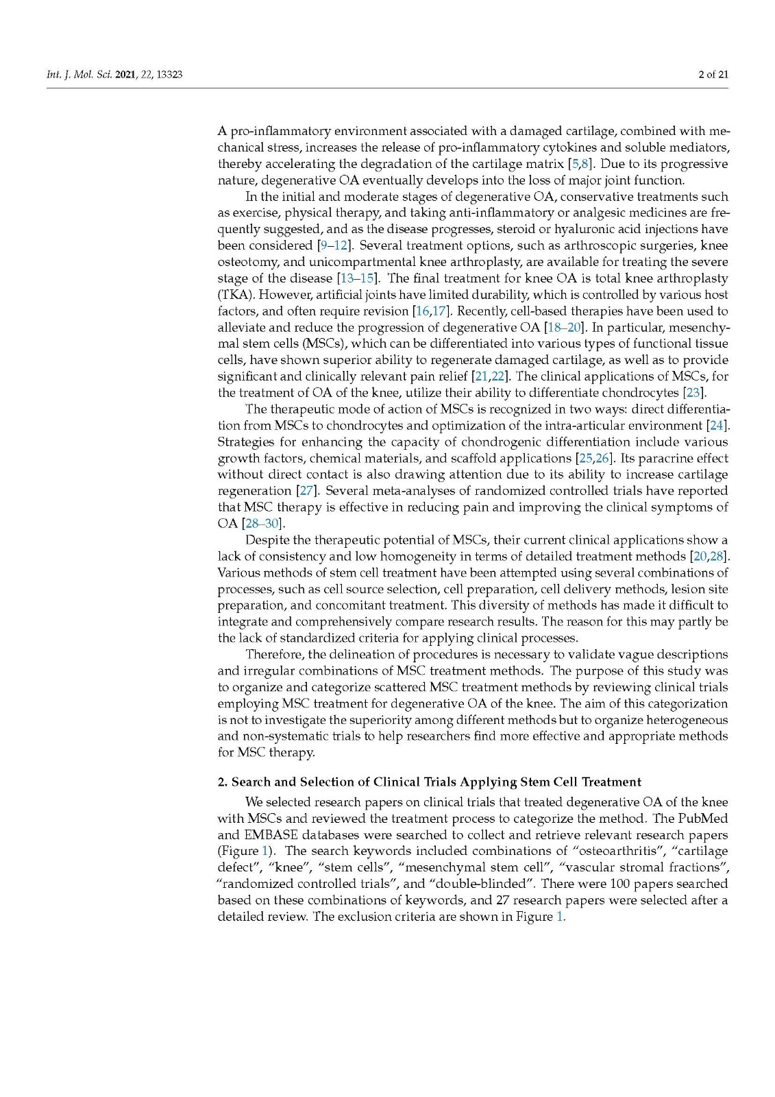The purpose of this study was to increase the consistency of future MSC therapies for OA by categorizing the current treatment methods.